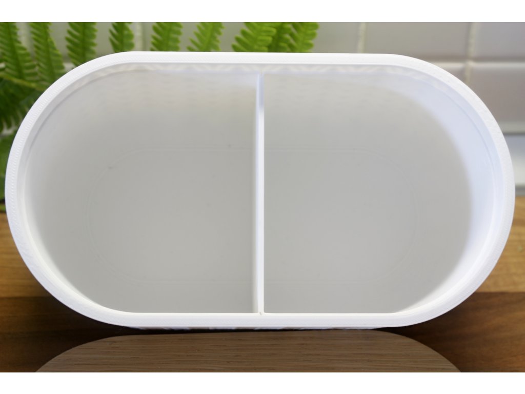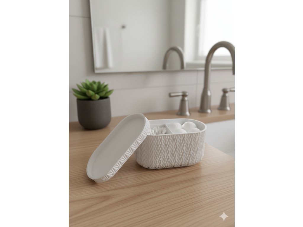 Díky svému stylovému designu a funkčnosti se skvěle hodí do koupelny, přináší estetiku a řád do prostoru. Vytvořte si uspořádanou a elegantní koupelnu s naší dózou, která je šetrná k životnímu prostředí a poskytuje praktické a estetické řešení pro uchovávání vašich hygienických potřeb.
