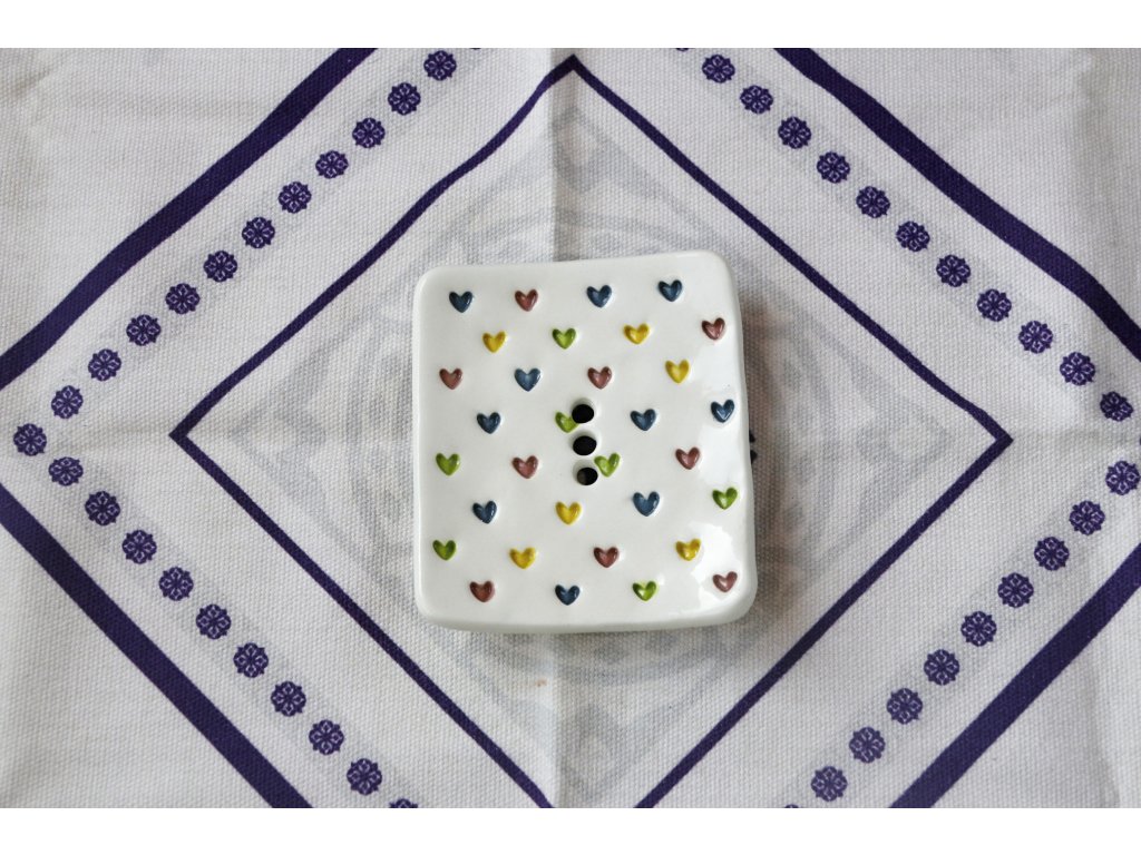 Keramická mýdlenka (podložka pod mýdlo) – obdélníková - barevná srdíčka 6