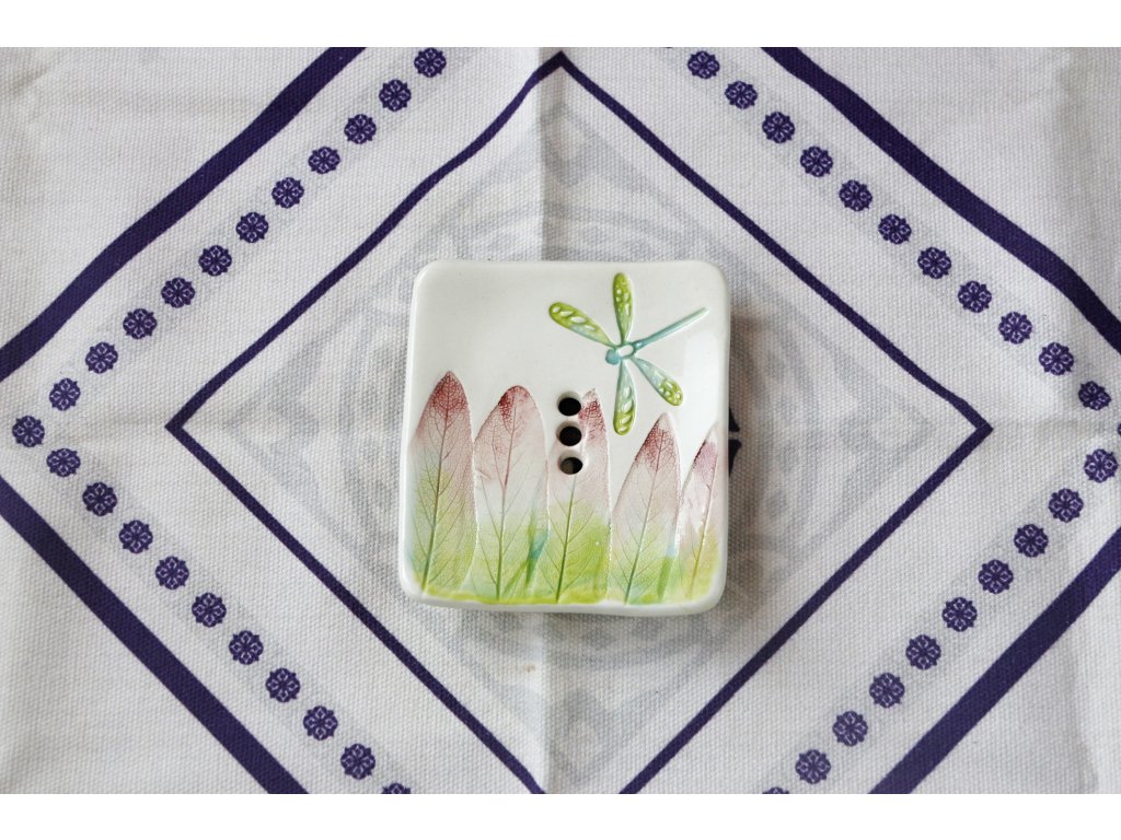 Keramická mýdlenka (podložka pod mýdlo) – obdélníková - barevné vážky 1