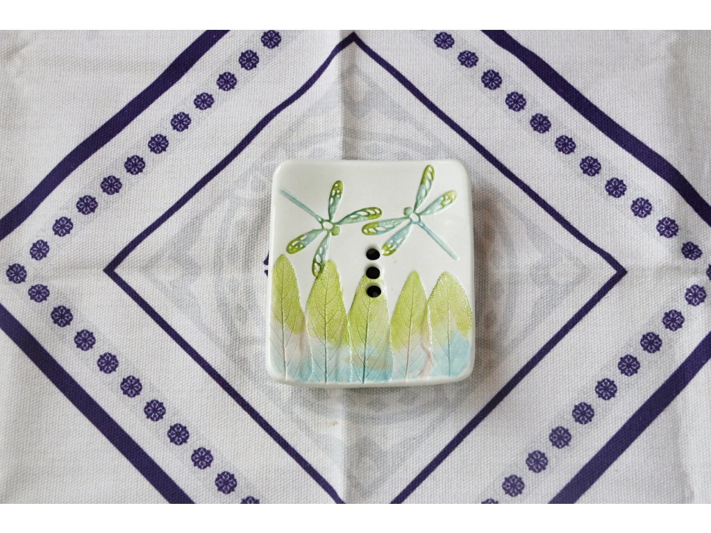 Keramická mýdlenka (podložka pod mýdlo) – obdélníková - barevné vážky 3