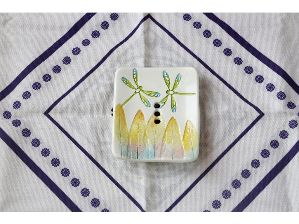 Keramická mýdlenka (podložka pod mýdlo) – obdélníková - barevné vážky 6