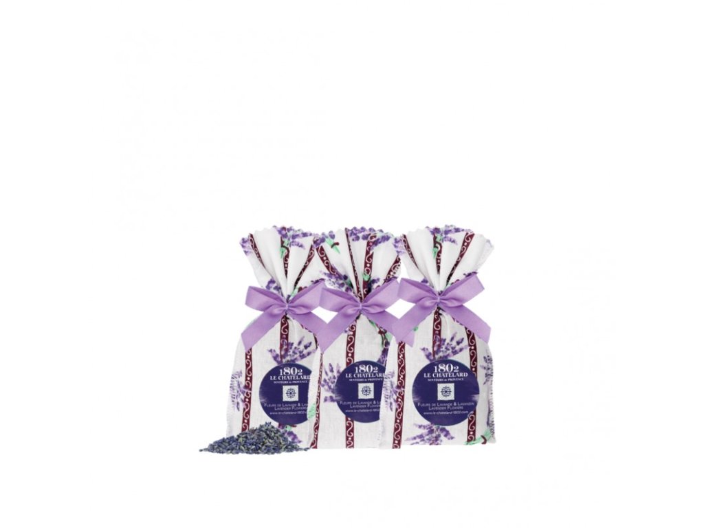 Každý sáček je ušit z kvalitní látky s motivem levandule a zdoben jemnou mašlí, díky čemuž se stává stylovým doplňkem interiéru. Skvěle se hodí také jako drobný dárek pro milovníky Provence.