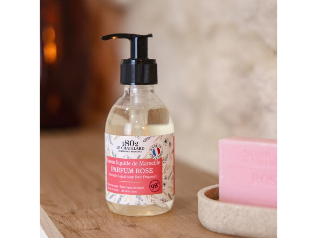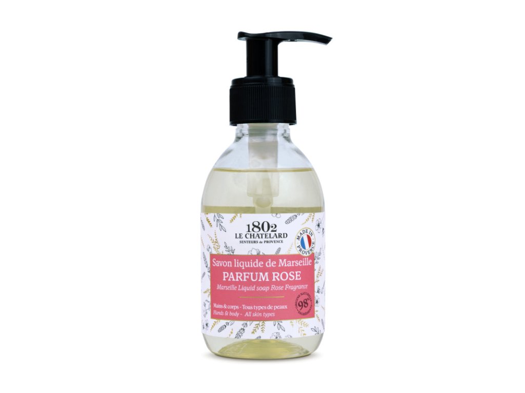 Tekutá mýdla Le Chatelard 1802 se vyrábí přímo v Provence podle tradiční marseillské receptury moderními postupy, což jim dodává jedinečnou jemnost. Jsou obohacena o pečlivě vybrané rostlinné oleje, zejména kokosový olej, který pokožku vyživuje. S 98 % přírodních složek a bez parabenů, sulfátů či jiných dráždivých látek, poskytují šetrné a účinné čištění pro ruce i tělo. Respektují přirozené pH pokožky, nevysušují ji a proměňují každodenní péči v autentický zážitek.
